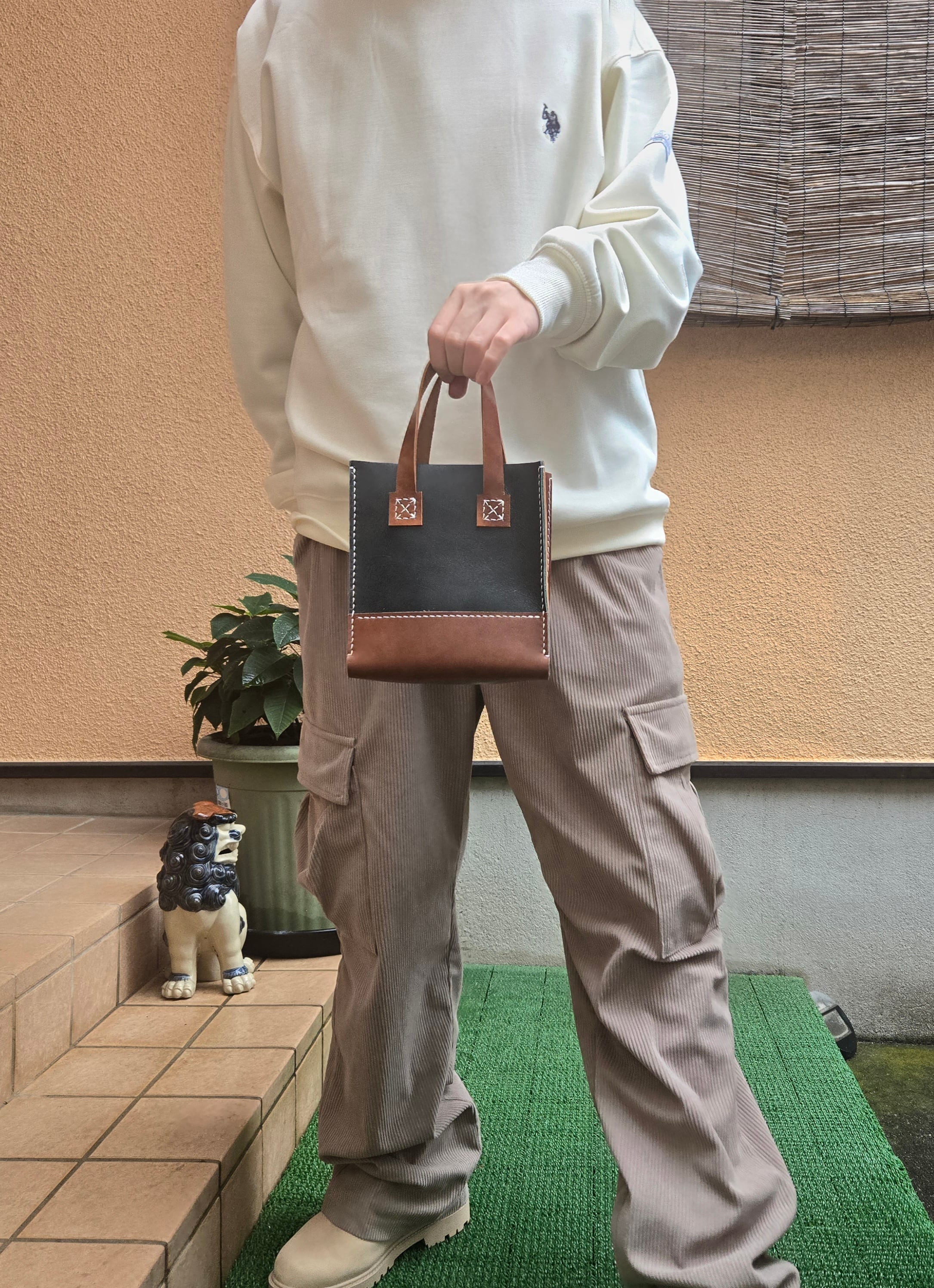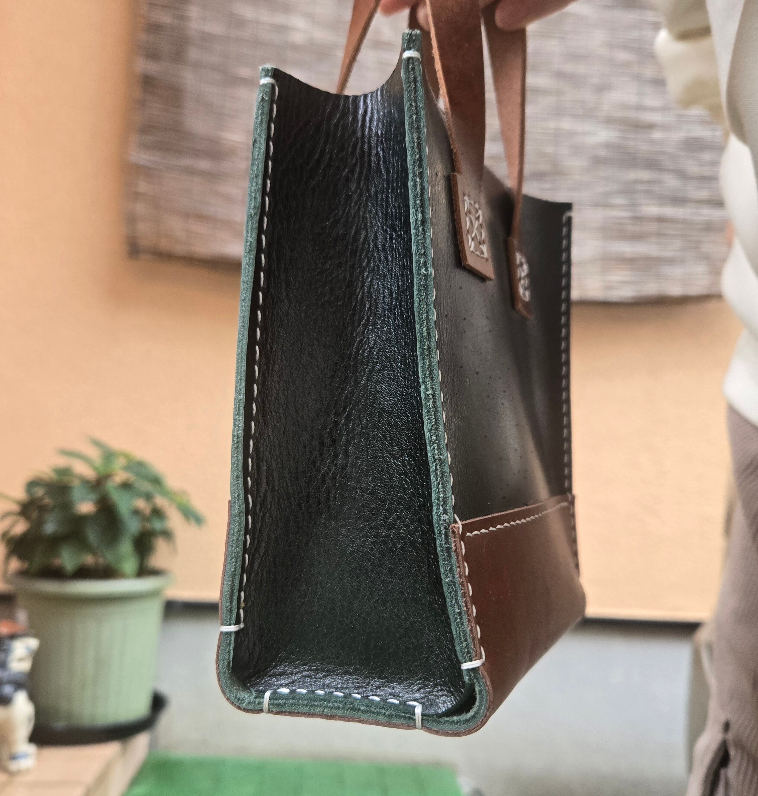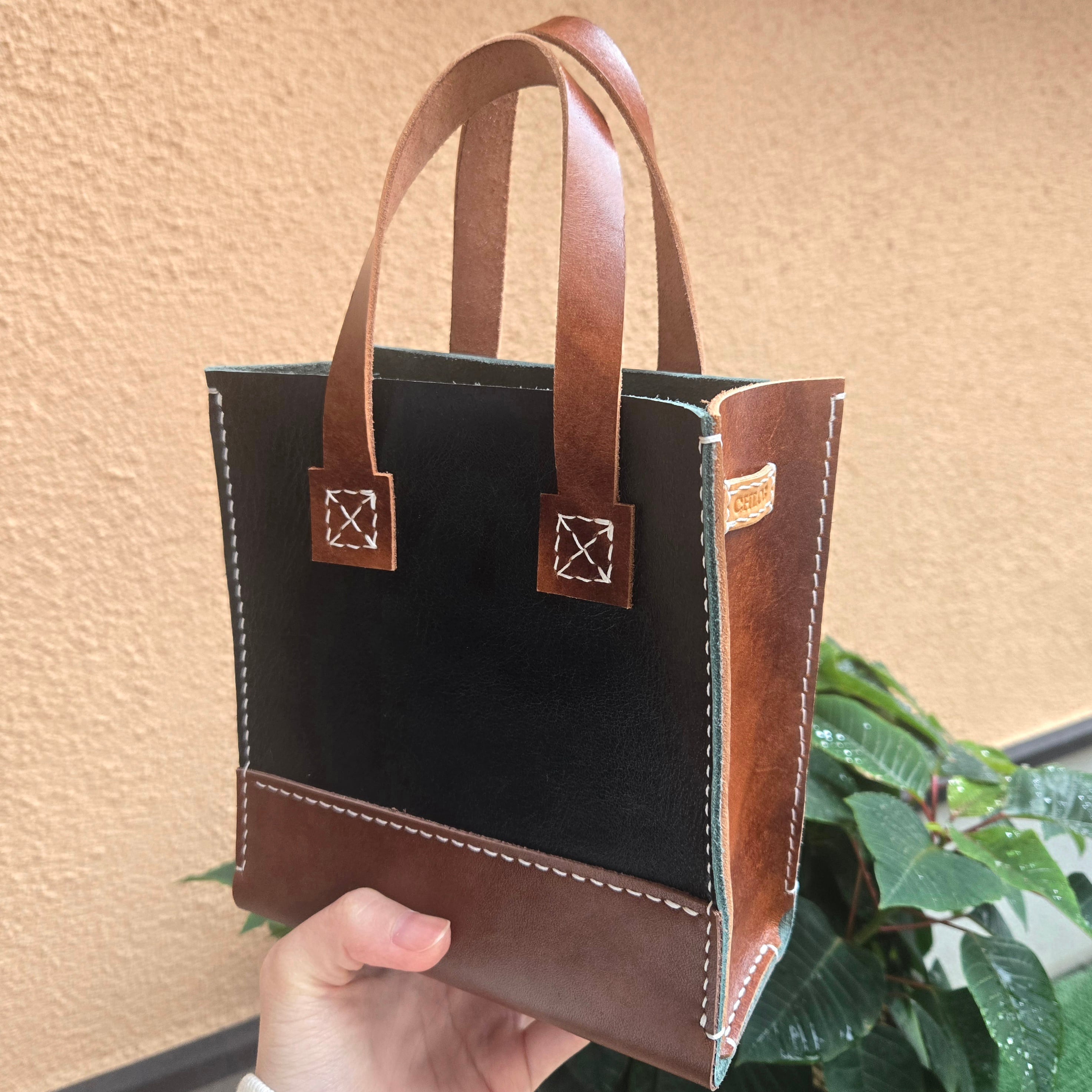 手仕事の温もりが宿る、本革ミニトートバッグ。