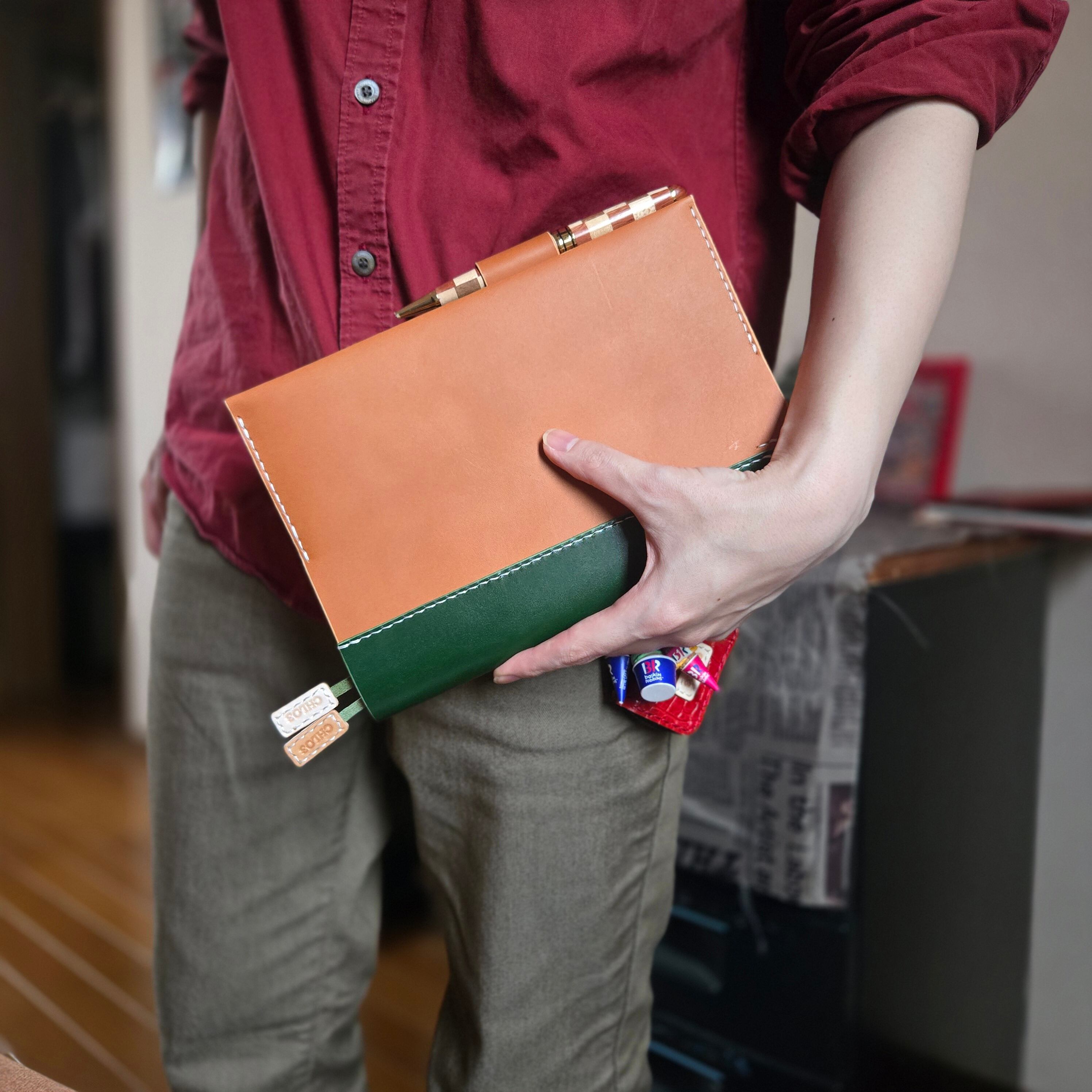 上質な本革を一針一針、手縫いで仕立てたA5サイズのノートブックカバー。