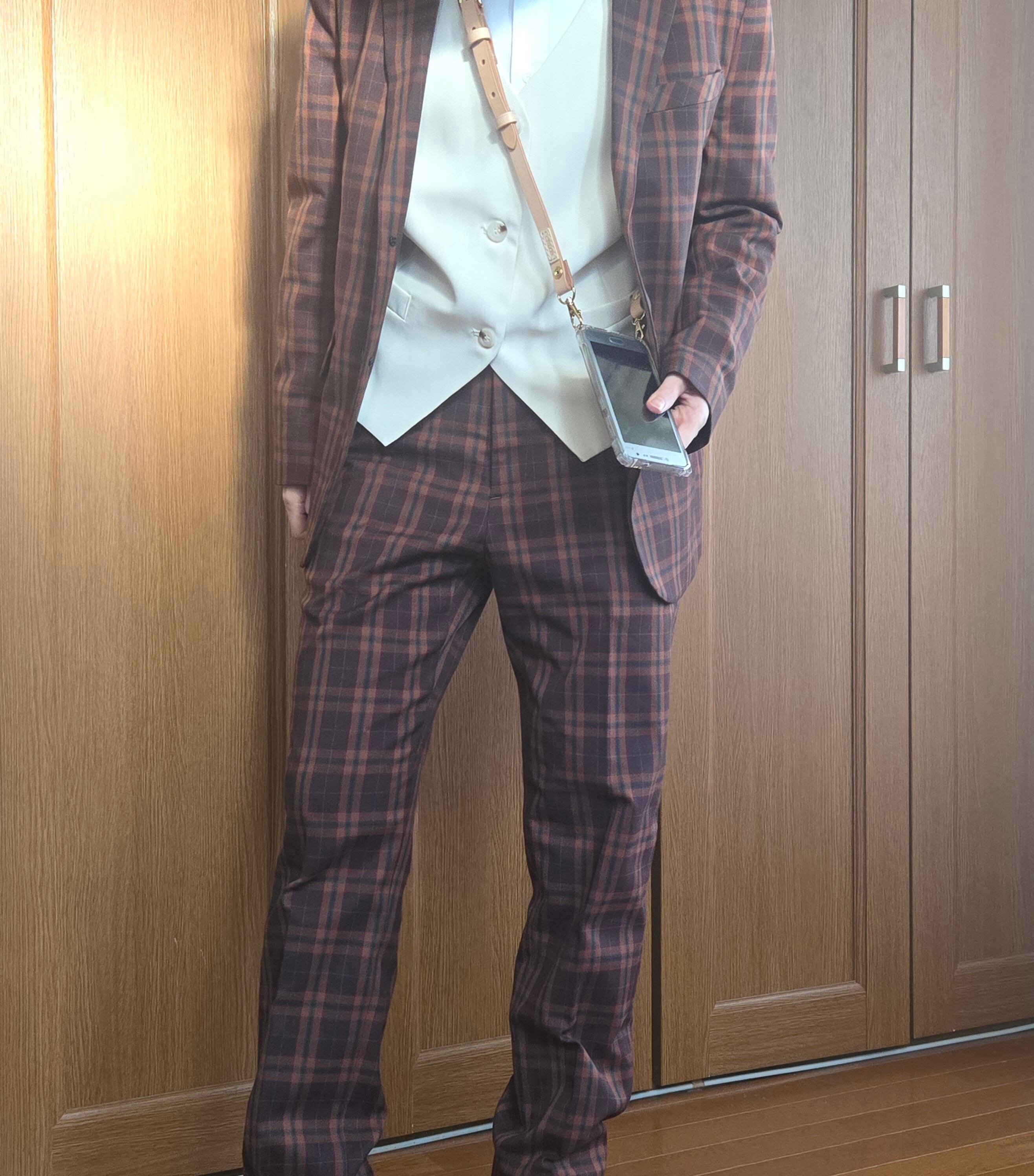肩に掛けた瞬間、いつものスーツ姿がより格好良く引き締まる印象になります。