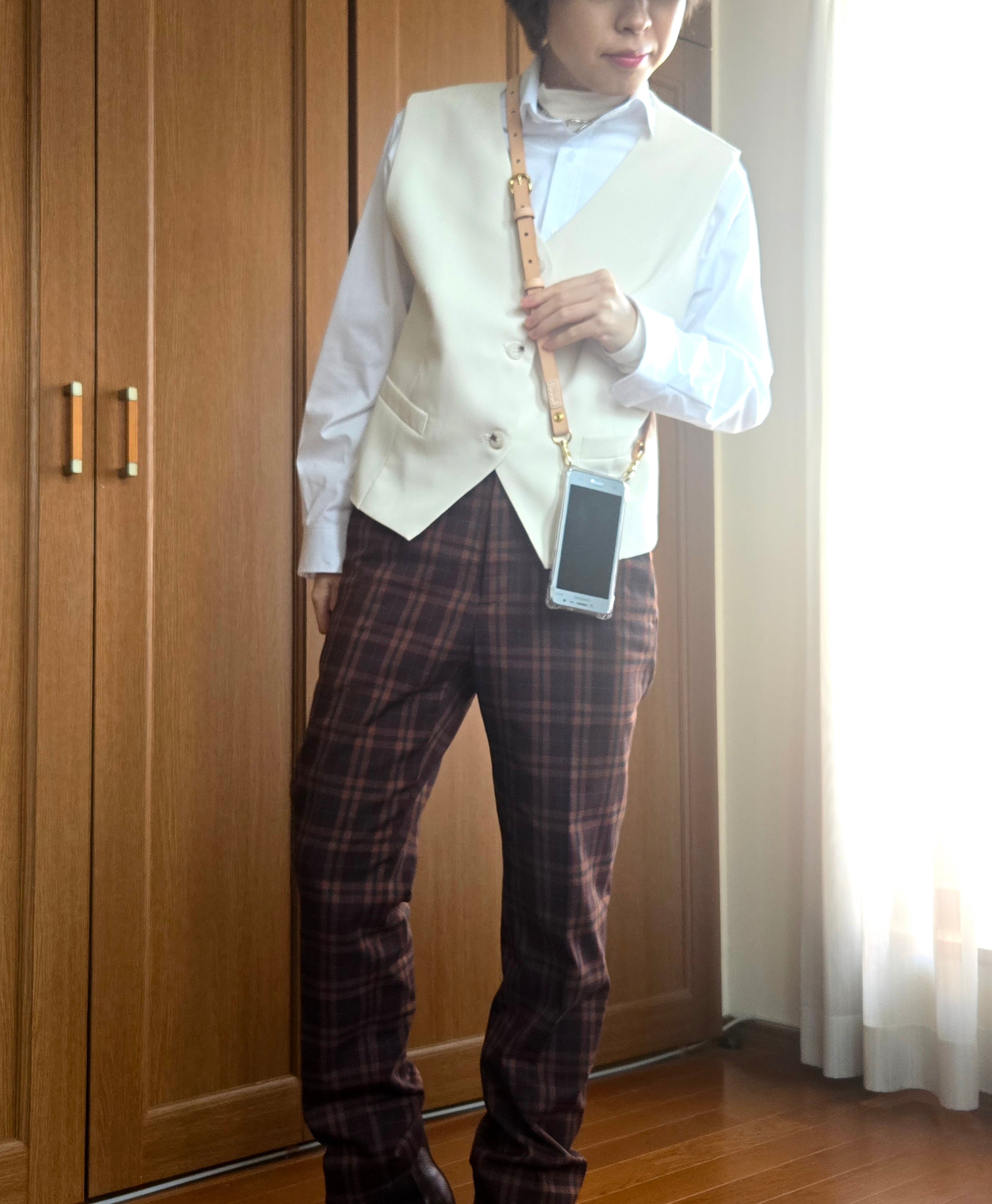 本革ならではの艶と質感が装い全体をさりげなく格上げします。